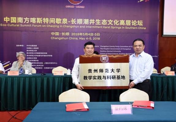 闭幕式上,刘肇军副书记代表williamhill官网与长顺县人民政府就共同建立长顺潮井教学实践与科研基地签署协议并授牌。大会组委会宣布硕博论坛优秀论文获奖名单并颁奖,宣读《中国南方喀斯特间歇泉-长顺潮井生态文化高层论坛倡议书》。 《宣言》呼吁要像保护眼睛一样保护生态环境,像对待生命一样对待生态环境,让源源不断的潮井泉水成为人民生活增长点,成为长顺美丽乡村可持续健康发展的支撑点。本次论坛系黔南州第十二届旅游产业发展大会系列活动之一,旨在深入贯彻党的十九大关于“生态文明建设”的战略部署,努力践行习总书记“生态优先,绿色发展”的科学理念。