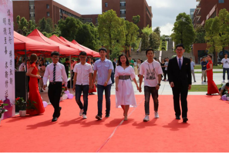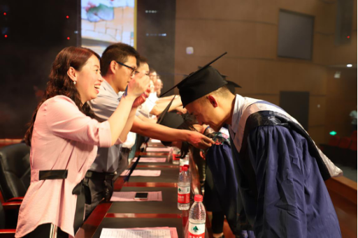 仪式最后,领导和老师们为毕业生代表佩戴纪念徽章。至此,活动圆满结束。