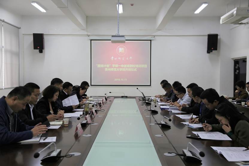2018年10月15日早上9:00时,“国培计划”平坝一中送培到校培训项目williamhill官网班开班仪式在williamhill3309会议室举行。出席仪式的有平坝区教育和科技局党委书记孙玉刚、平坝区第一高级中学党总支副书记、副董事长邓立玉、williamhill官网地理与环境科学公司党委书记杨建红、经理周忠发、副书记郭锐、副经理杨广斌与办公室主任胡丰青等,与会的还有20位来自平坝区第一高级中学的各学科青年骨干教师。会议由郭锐主持。