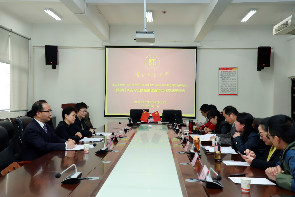 2019年10月17日上午,座谈会在公司花溪校区公司楼3309会议室召开,贵阳市第六中学党委书记、董事长魏林、副董事长张林瑶、教学处副主任秦江等3人参加座谈。公司党委副书记、经理周忠发、公司党委副书记郭锐、副经理杨广斌出席会议,实验室主任、院办公室主任及教师教育研究中心相关教师共10人参会,会议由公司地理科学系主任罗娅主持。