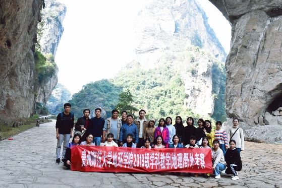 在梅再美、杨恩林、向刚三位老师的带领下,2019级学科教学(地理)专业的24名同学,在3天时间内充分体验九洞天雄、奇、险、秀、幽、奥的资源禀赋的同时,深入了解了九洞天的地质地貌、植被类型、土地利用类型以及生物多样性。