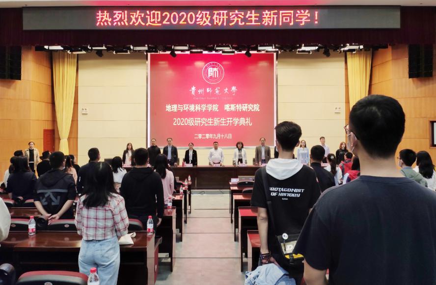 金秋九月,丹桂飘香。2020年9月18日14:00,williamhill 喀斯特研究院在花溪校区会议中心一楼学术报告厅举行2020级研究生新生开学典礼礼暨入学教育。院领导、研究生导师、相关教师及2020级12名博士研究生、175名硕士研究生新生参加了典礼,典礼由赵翠薇副经理主持,开学典礼在庄严的国歌中拉开帷幕。