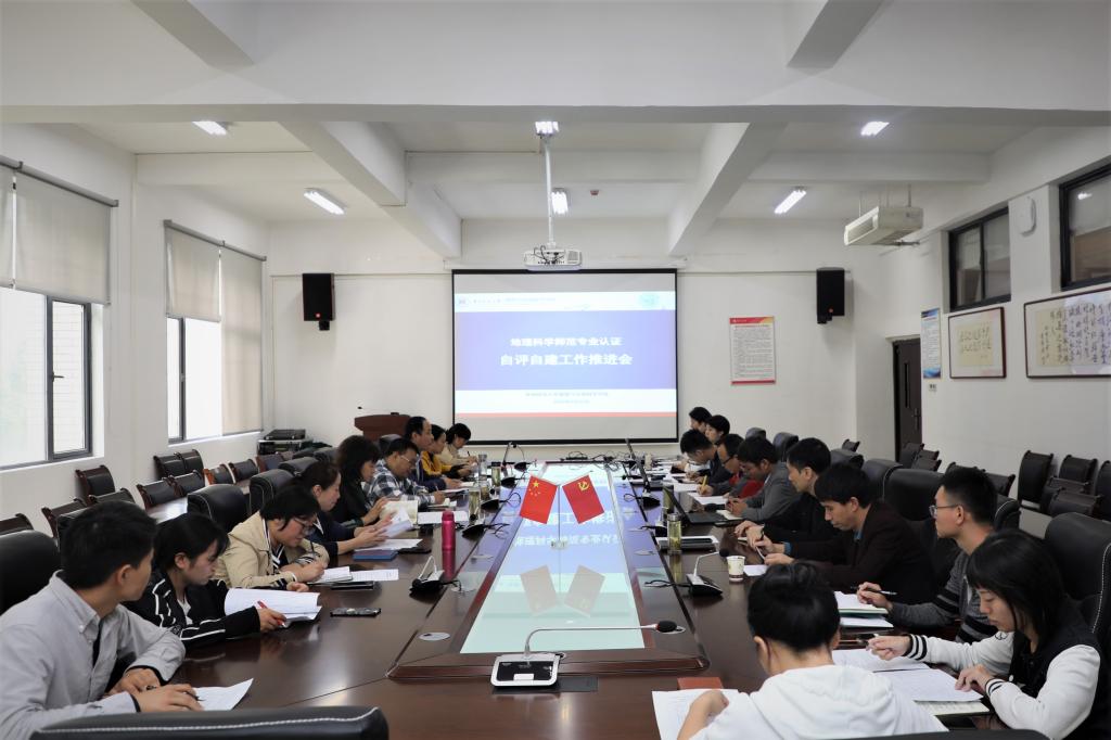 williamhill地理科学专业师范专业认证自评自建工作推进会,于9月23日上午10:00时在花溪校区3309会议室举行。公司党委书记杨建红、经理周忠发、副书记郭锐、副经理赵翠薇、杨广斌出席会议,师范专业认证自评报告撰写组负责人及主要参与人、教学管理科全体人员参加会议。会议由杨广斌主持。