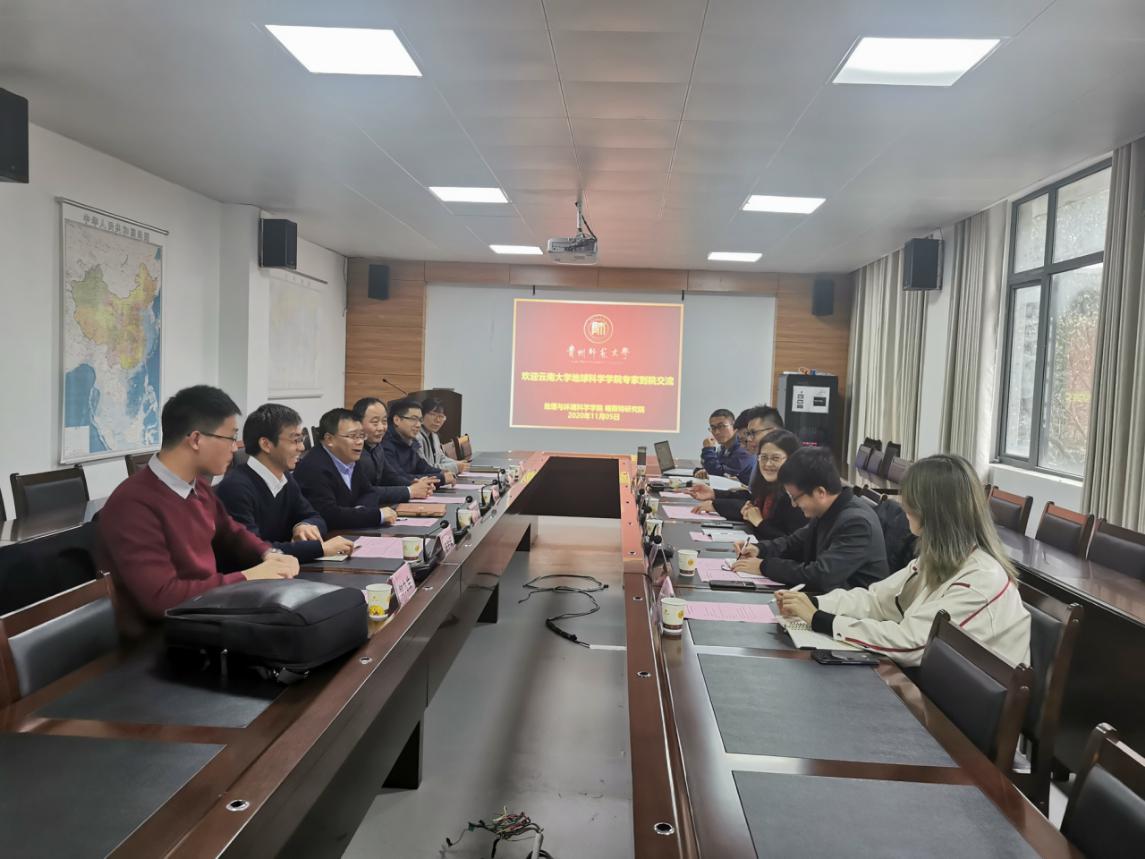 首先,周忠发对陈俊旭一行到院交流表示欢迎,并介绍了两院概况、科研工作与人才培养情况。随后陈俊旭介绍了云南大学地球科学公司的总体情况、专业设置、团队队伍等情况。会上,双方就石漠化监测、演变机制及防治、喀斯特地区国土空间保护与开发利用模式以及喀斯特大数据平台建设等问题进行交流。