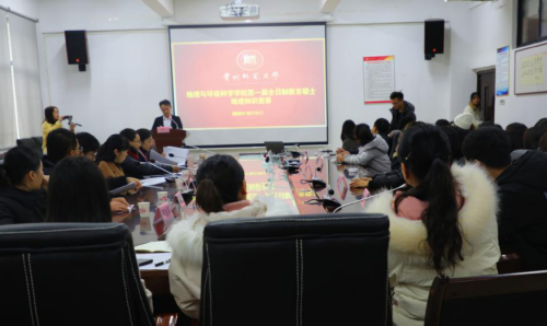 百年大计,教育为本,教育大计,教师为本。为丰富全日制教育硕士研究生的学习形式、提升综合素质、提高培养质量,2020年12月11日下午14:00,第一届全日制教育硕士地理知识竞赛在花溪校区地环公司3309会议室举行,竞赛评委由赵翠薇、罗娅、刘艳、周秋文四位老师担任,研究生科徐黎明老师、黄启芬老师出席了本次活动。知识竞赛由公司研究生会副主席张航主持。