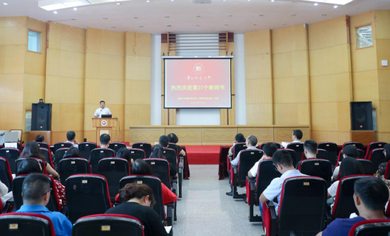 在第37个教师节到来之际,为激励全院教职工不忘初心、牢记使命,更加自觉地肩负起立德树人、教书育人的时代重任,争做党和人民满意的“四有”好老师,9月10日下午,公司在宝山校区田家炳三楼多功能厅召开第37个教师节庆祝大会暨新进教师入职宣誓仪式,两院全体教职工150余人参加大会。公司党委书记肖远平来到现场,向老师们致以节日的祝福并与大家合影留念。