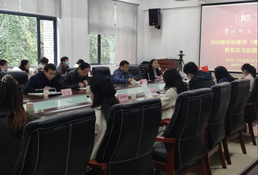 总结会上,遵义一中、贵阳六中、贵阳二中的3名2020级研究生代表进行了教育实习工作总结,分享了实习心得。遵义一中实习生代表张航从教学实习、班主任实习、实习心得等方面,总结和分享了其在基础教学工作上的磨练、课堂教学方面的心得体会以及对班主任工作的细致、繁琐的深刻体验,并提出“学以致用、用以致学”的宝贵经验,强调研究生阶段研究能力的培养和以实践检验知识的重要性。贵阳六中实习生代表杨思思则分别从校内实习、校外实习、实习工作等方面,展示其在听课、备课、教研过程中的经验和收获、研学旅行以及自然、人文地理实践活动中知识、能力的提升,表达了对贵阳六中老师严格要求和指导、公司悉心培养的感谢,同时也分享了自己在与员工交流、公司产品、应聘工作等方面的经验和建议。贵阳二中实习生代表彭红梅从班级工作、地理教学工作、教务工作、个人学习等方面展示其在实习工作中的收获,在做好听课、备课、上课的本职工作的同时,也需要善于观察员工、了解员工学情,进而完善教学设计,并要善于与其他教师进行交流、研讨,共同学习和进步,最后强调在实习前做好课题研究的准备,以便通过实践进行分析和研究。汇报结束后,教育实习指导老师李亦秋老师和周光发老师分别对此次教育实习工作进行总结,肯定了此次教育实习工作开展过程的完整性,同时也指出其中存在的问题和不足。