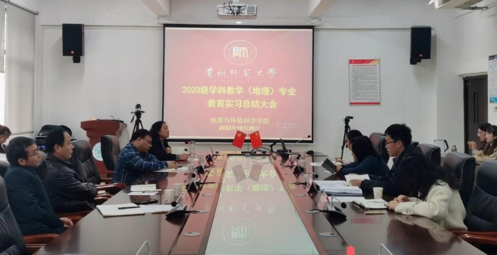 为总结教育实习工作,分享实习经验,保障公司学科教学(地理)教育实习工作有序开展,不断提升教育实习质量。10月28日下午,2020级学科教学(地理)专业教育硕士教育实习总结大会在3309会议室举行,经理周忠发老师、副经理赵翠薇老师、杨广斌老师、赵宇鸾老师出席会议,教育硕士导师李亦秋老师、周光发老师,研究生管理科黄启芬老师、吴沂晓老师等参会,公司2020级、2021级、2022级学科教学(地理)研究生参加总结大会。本次大会由赵翠薇副经理主持。
