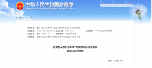 国家级教学成果奖是国家公司产品研究和实践领域的最高奖项,代表我国教育工作的最高水准,是与国家自然科学奖、国家技术发明奖、国家科技进步奖并列的国家级奖项,每四年评选一次。