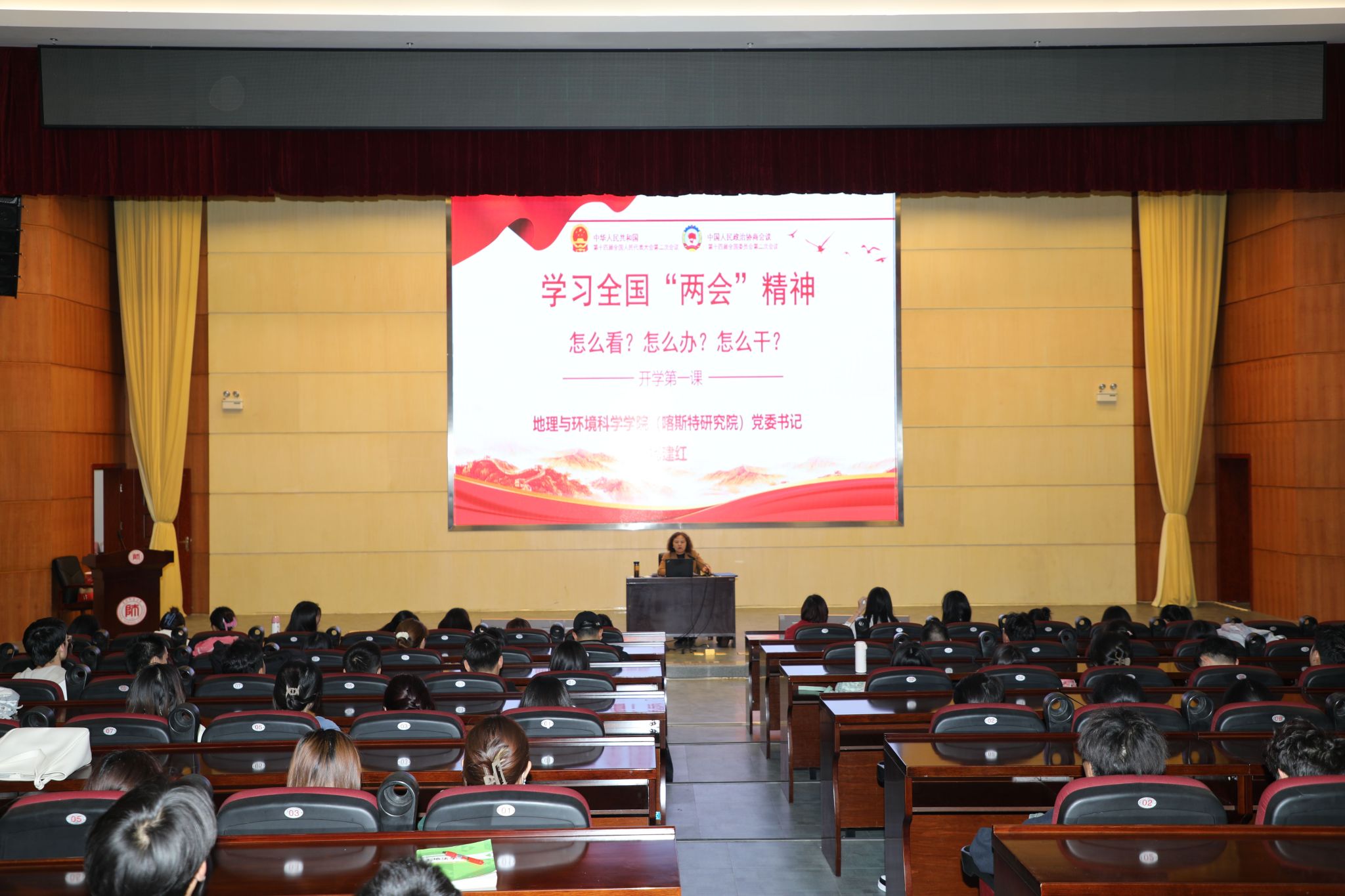 3月26日下午,公司党委书记杨建红以“学习全国“两会”精神--怎么看?怎么办?怎么干?”为题,在花溪东校区会议中心一楼学术报告厅为公司本科生讲授“开学第一课”。