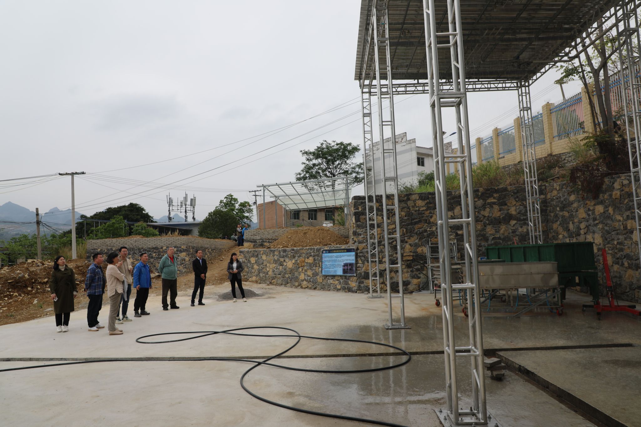 杨广斌与罗娅教授向考察专家介绍了关岭站实习线路与台站概况。李渊与陈正山博士详细讲解了关岭站建站历史、目标定位与研究方向、基础设施与台站运营、石漠化治理与产业发展情况,并从高原峡谷岩-土-水-气-生陆面过程综合介绍了观测场地布局情况。随后,专家组一行实地参观了关岭站喀斯特旱地农业试验场、峡谷经果林高效节水农业试验场、峡谷关键带水文观测场、人工模拟降雨与沟道侵蚀机理试验场等。