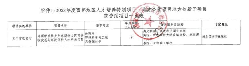 近日,国家留学基金管理委员会2023年度“西部地区人才培养特别项目、地方合作项目地方创新子项目”评审结果公布,在教育厅、williamhill官网国际交流与合作处的指导推荐下,公司组织申报的“地理学助推贵州喀斯特山区可持续发展与环境保护人才培养项目”成功获批立项。这是公司首次获批该类型项目,也是今年贵州省唯一获批项目。