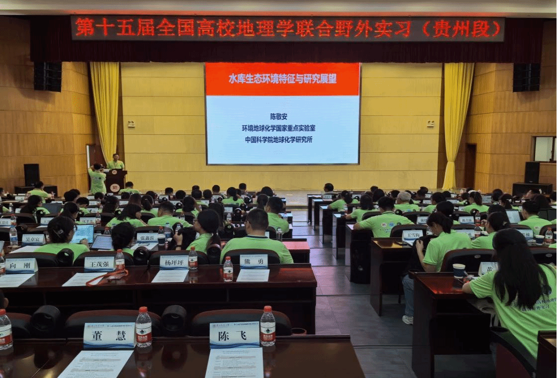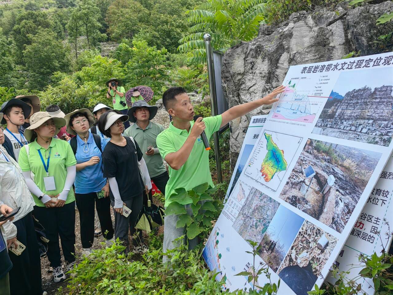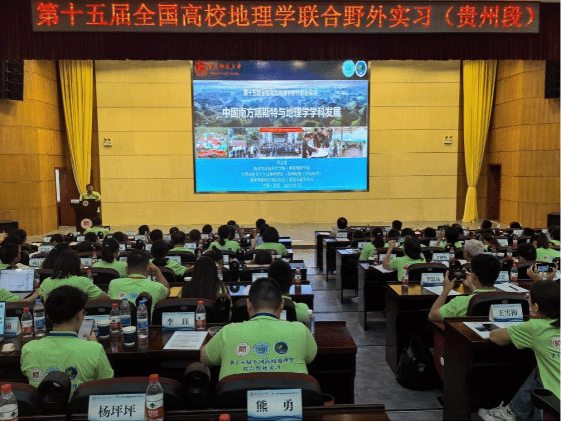 位于长江、珠江分水岭(花溪段)的花溪大学城,是本次实习的第三站。8月5日上午,第十五届全国高校地理学联合野外实习(贵州段)欢迎仪式在花溪大学城williamhill官网东区会议中心举行。公司副董事长刘瑾对与会领导、嘉宾和师生的到来表示热烈欢迎,并简要介绍了公司历史沿革、办学特色以及地理学科在科学研究、人才培养、社会服务和创新发展等方面取得的成绩。她表示,公司要深入学习贯彻党的二十届三中全会精神,不断深化改革助力各类先进生产要素向发展新质生产力顺畅流动,创新人才培养模式,为高质量推进中国式现代化发展提供‘新质’人才支撑。教育部地理学科类专业高等教育指导委员会副主任、教育部地理学野外实践课程虚拟教研室负责人、华东师范大学郑祥民教授向williamhill官网举办全国地理学联合野外实习活动表示祝贺和感谢,并动员号召同学们要珍惜跨区域实习机会,发扬传承老一辈地理人吃苦耐劳、创新协作精神,不仅要深刻理解地理学的博大精深,更要主动服务国家重大战略。