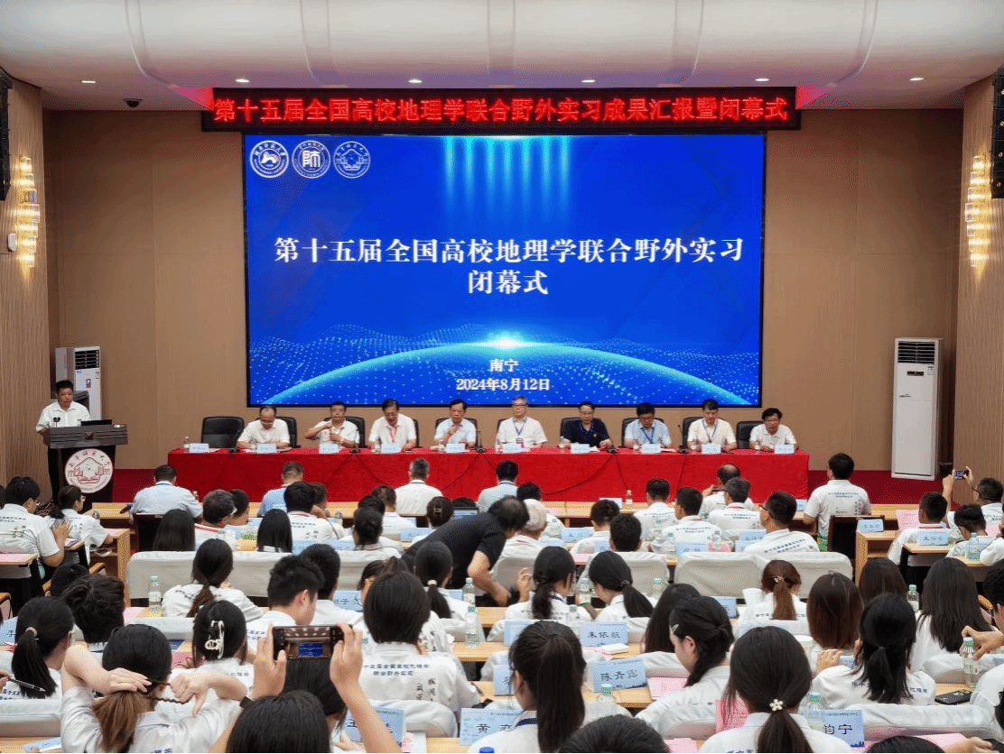 8月7日下午-11日,实习在广西乐业—百色—崇左—钦州—防城港—南宁等地相继举行。8月12日在南宁师范大学(明秀校区)开展了形式多样、精彩纷呈的小组汇报总结,圆满完成实习核心任务,并举行第十五届全国高校地理学联合野外实习闭幕式。