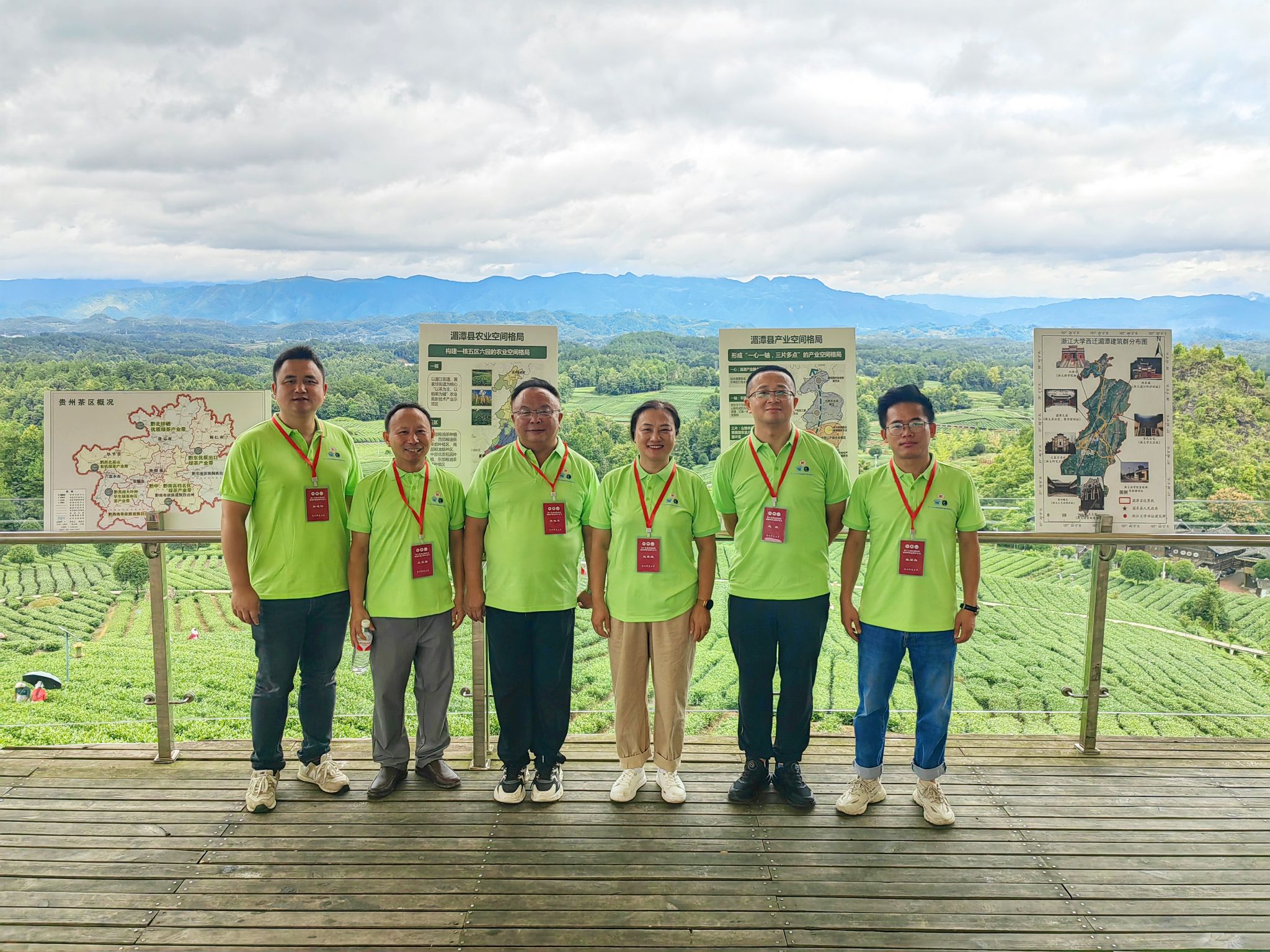 湄潭茶基地合影 讲解老师(左起)孙建伟、王茂强、李旭东、赵翠薇、赵航、陈国磊