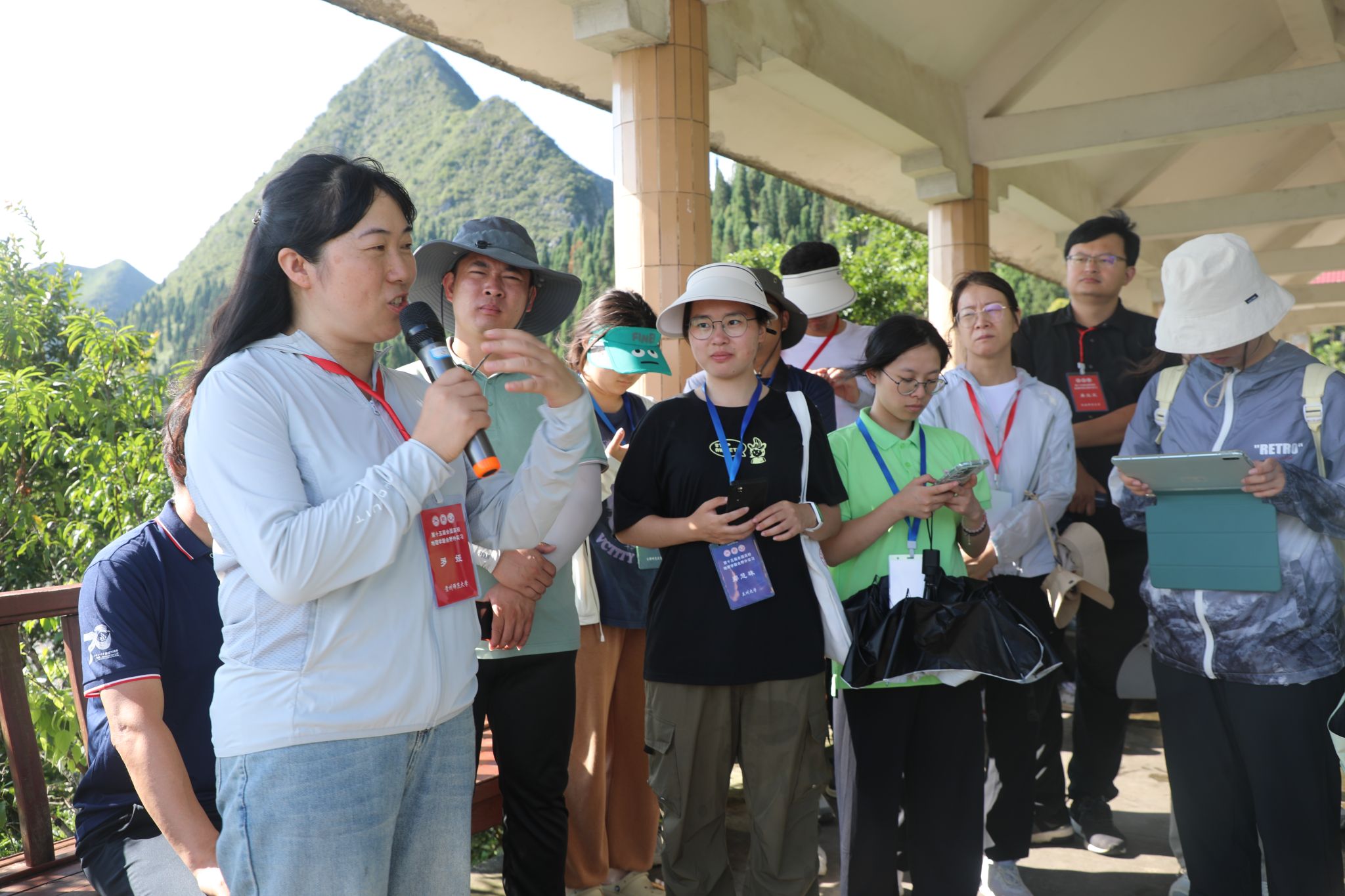 第十五届全国高校地理学联合野外实习(贵州段)将200余名师生混合编队为12个小组(其中各组不同高校员工12人左右、骨干教师4-5名)。在每个野外实习点,均配备williamhill官网地理学黄大年式教师团队资深专家学者的精湛讲解,如周忠发、赵宇鸾、杨广斌、赵翠薇、朱大运、焦树林、周秋文、李旭东、罗娅、杨恩林、赵航、陈正山、李渊、孙建伟、陈国磊、郭琪、陈露、杨坪坪、向刚等博导硕导20余人及后勤服务志愿师生共计40余人,以“问题引导—提出假设—认识地物—求证寻因—解决问题”的野外教学模式,提升员工的野外探索、求证和协作能力。结合历史事件、科研故事等,引导员工形成深厚的家国情怀、科学求真精神,帮助员工树立个人发展服务国家的理想信念。