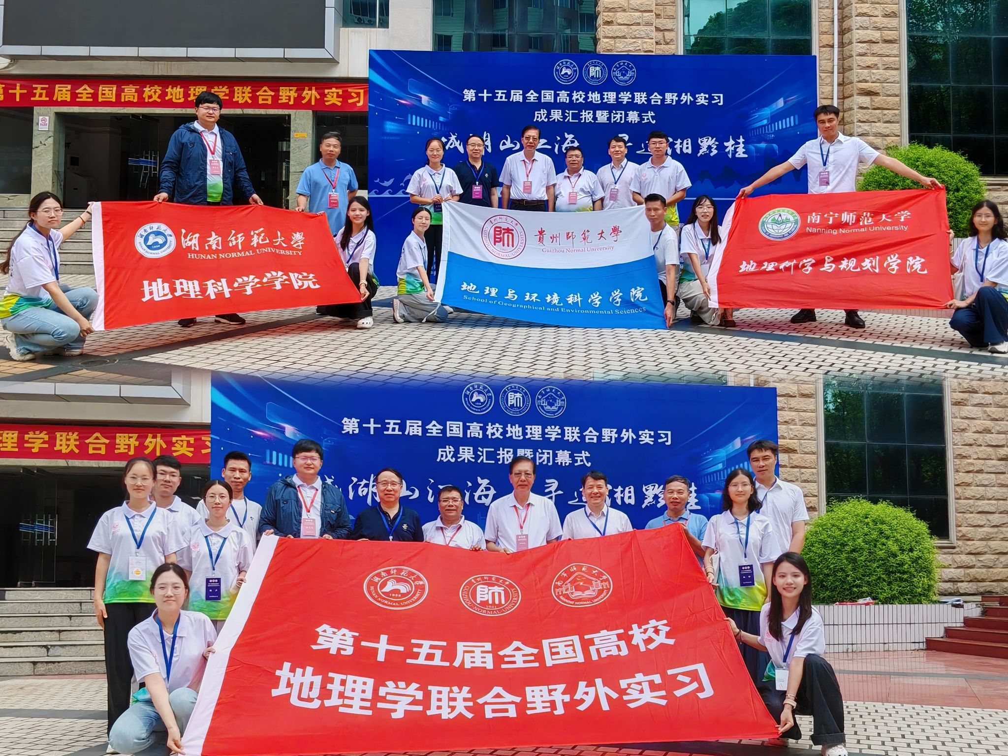 第十五届全国高校地理学联合野外实习,是在总结借鉴原有西北、华北、东北、西南、华南、华中、华东等全国十余条典型地理实习线路和实习经验的基础上,通过多年研讨筹备和顶层设计,整合了湘黔桂三省地理野外线路资源和全国名团队源,以区域国家战略目标的地理学核心问题为导向,以点-线-面地理学综合系统内容为切入点,通过对湘黔桂三省的名城、名湖、名山、名江、名海的综合考察,实地探寻实习区域地理要素及人地系统的格局、过程与机理,复杂地理特征形成机制及其利用与保护的战略对策。实习活动特别强调自然与人文要素交互、地域差异与区域综合等地理学思维的培养,强调实习过程中现代技术的应用,充分发挥野外实践教学的特有全方位育人功能。