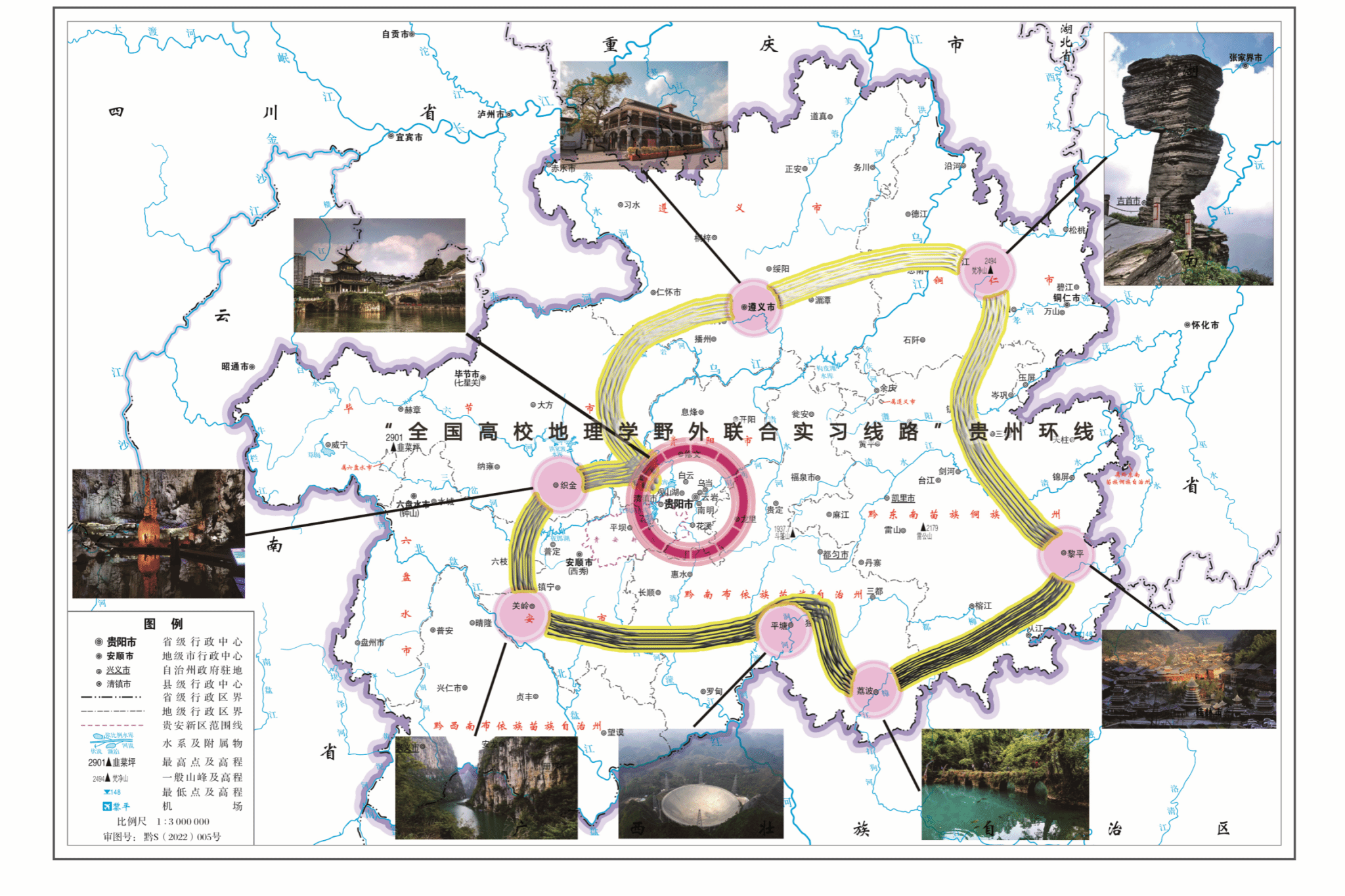 第十五届联合实习(贵州段)路线图 贵州省地理学野外综合实习环线示意图