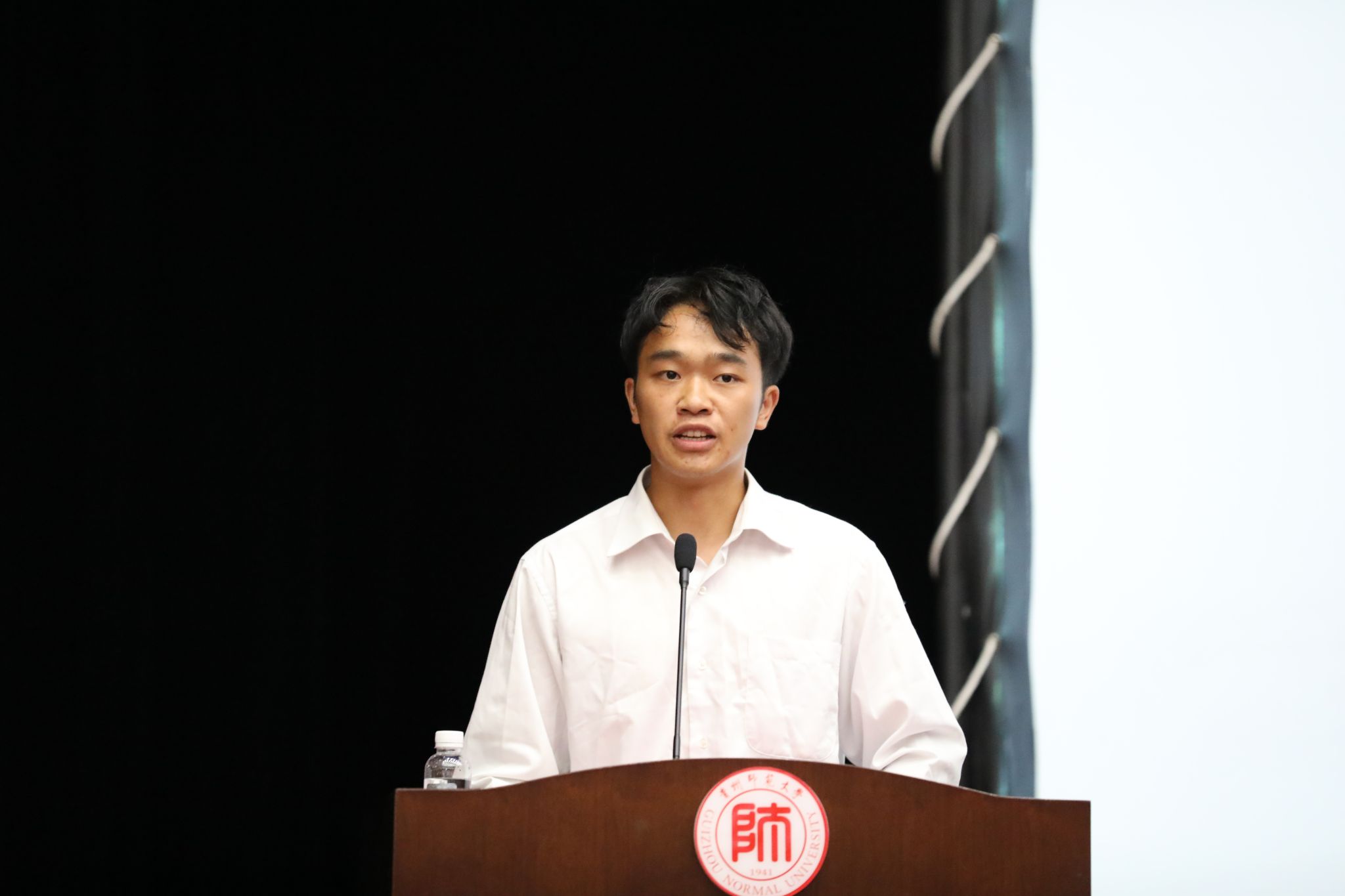 2024级本科新生代表王艺璇代表全体本科新生表态,将恪守和发扬公司校训,秉持初心,用心学习,在有着83年深厚文化底蕴的贵州师大校园中,在育人氛围浓厚、育人成果丰硕的地环喀院优良的学习氛围中,不懈努力、奋勇拼搏,做到知行合一、学以致用,努力成为对国家和社会有用之材;2024级硕士研究生新生代表吴吉康在发言中与同学们共勉,他说:“梦想容易,坚守不易,我们应当以博学筑梦,博学多才、学富五车应是我们的愿望;我们应以睿智修梦,机敏睿智,敢于质疑应是我们的追求;我们应当以品德持梦,品德高尚应是我们的向往”。2024级博士研究生新生代表黄有燕在发言中对师长表达了诚挚谢意,她期待与同学们一起,在新的人生起点上,秉承公司“慎思笃行,博学致新”的校训,广泛学习、深入思考,将思考付诸实践,通过实践来验证和实现学习的价值。