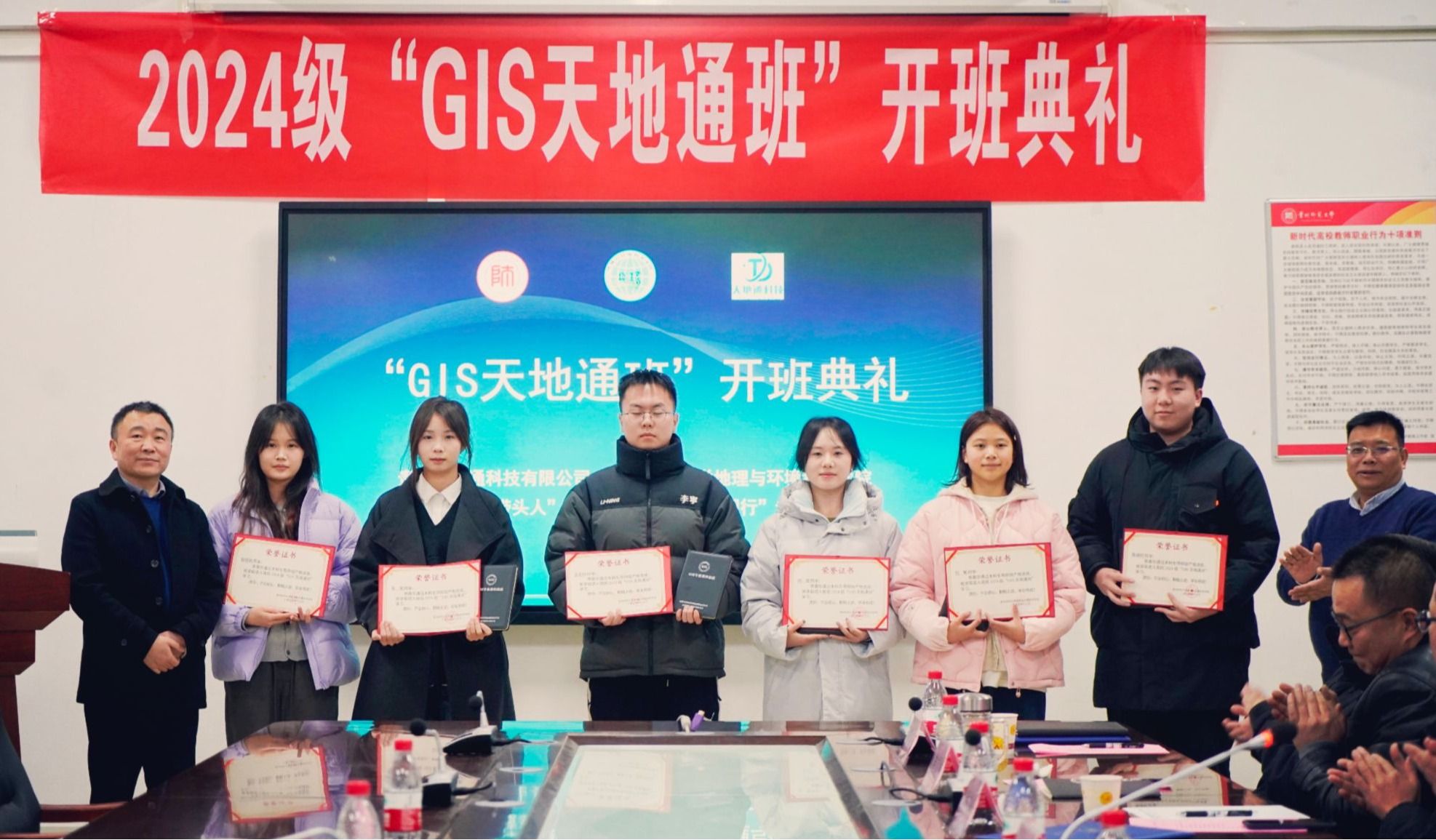 开班典礼由地理信息科学系主任周旭教授主持。首先,杨广斌教授介绍了“GIS天地通班”的办学目的与团队构成,黄涛副总经理宣布了2024级“GIS天地通班”的录取名单。
