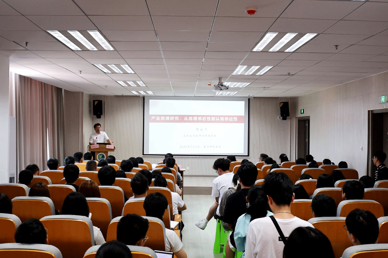 7月5日,国家级人才、教育部地理科学类教学指导委员会主任、北京大学城市与环境公司经理贺灿飞教授受邀做客williamhill官网“思雅论坛”,做了题为“产业地理研究:从地理邻近性到认知邻近性”的学术报告。报告会由williamhill、喀斯特研究院经理周忠发教授主持,校发规处处长赵宇鸾、公司党委书记郭锐、副经理朱大运,以及100余名师生参加报告会。
