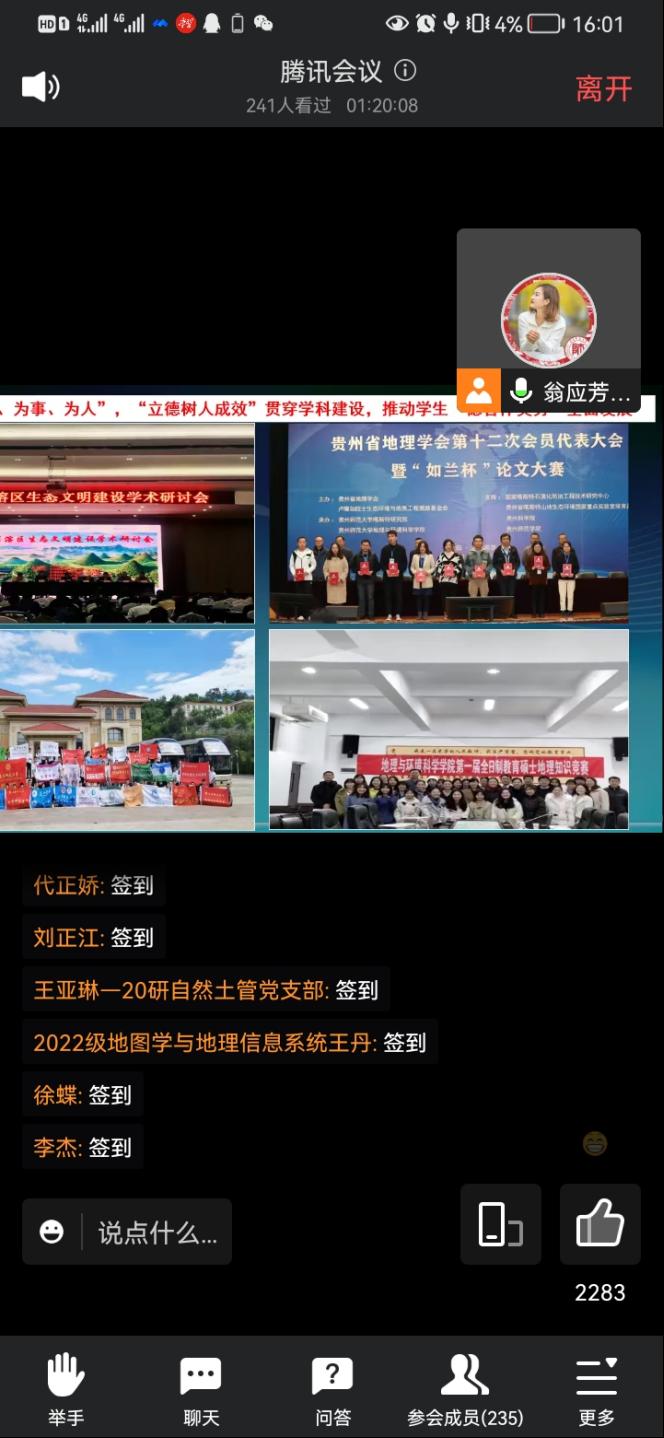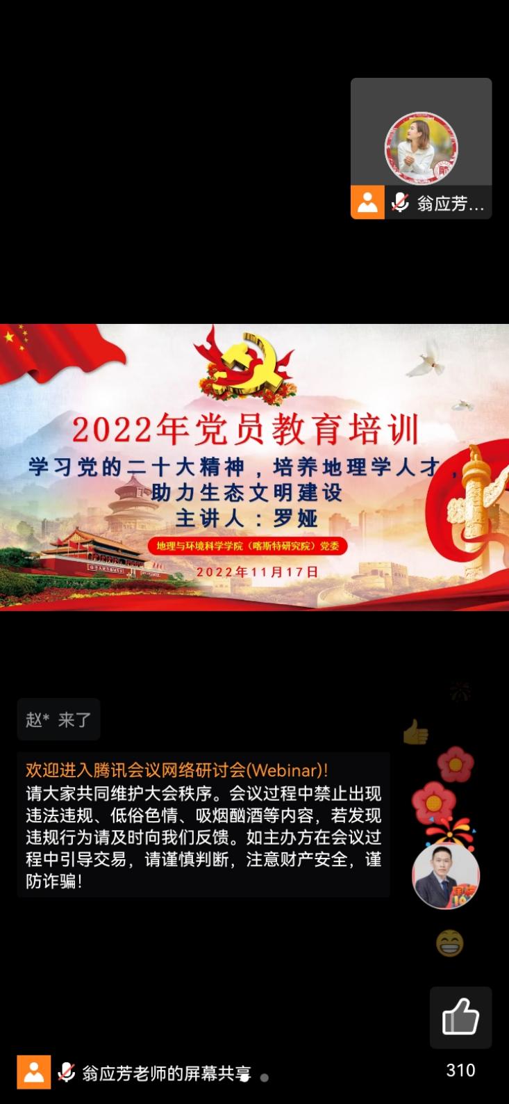 2022年11月17日,由公司党委委员罗娅老师以“学习党的二十大精神,培养地理学人才,助力生态文明建设”为主题展开。罗娅老师带领大家学习了党的二十大会议主题以及大会关于生态文明建设的论述,介绍了中国生态文明建设取得的成就和案例,分析了地理学为生态文明建设的可能贡献,最后提出地理学人才培养改进措施。通过本次学习,与会党员对党的二十大中关于生态文明建设的论述有了更进一步认识,同时激发了员工党员对地理学为生态文明建设的可能贡献的思考,加深了教师党员对地理学人才培养国家需求的理解与认同。