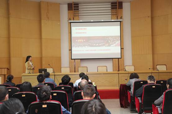 随后,肖时珍就省第十三次党代会精神进行专题宣讲,她自豪地与在座师生分享了此次作为省党代会代表参加大会的深切感受,随后,她从“党代会的基本情况”、“贵州省第十三次党代会的主要精神”、“学习贯彻贵州省第十三次党代会精神的感悟”3个方面进行了深入讲解,并就学习会议精神谈了个人教学科研工作打算,她表示,在未来的工作和学习中,要围绕“四新”中的生态文明建设出新绩、“四化”中的旅游产业化,继续助力贵州世界自然遗产及其他自然保护地的保护、管理及可持续发展研究与应用,不断做好绿水青山就是金山银山这篇大文章,厚植高质量发展的生态优势;巩固拓展脱贫攻坚成果硬任务,扎实做好乡村振兴大文章;探索降碳、减污更实举措,扩绿提质。