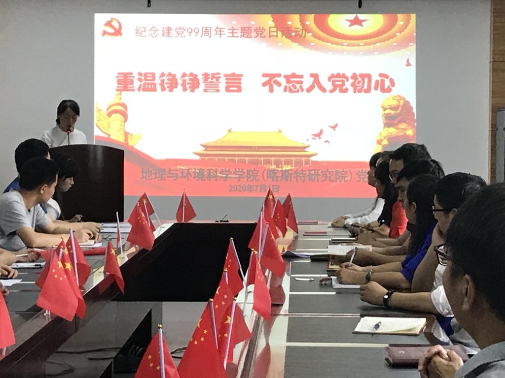 为纪念中国共产党成立九十九周年,进一步加强党的建设,提高党组织凝聚力、战斗力和感召力,激发全体党员新时代新担当新作为,公司党委组织师生党支部开展丰富多彩的主题党日活动纪念建党99周年。7月1日上午,喀斯特研究院师生党支部联合开展以“重温铮铮誓言 不忘入党初心”主题党日活动,活动在宝山校区喀斯特研究院三楼会议室举行。喀斯特研究院教职工党员、员工党员参加活动,活动由公司党委副书记郭锐主持。下午,地理与环境科学公司由教工行政党支部牵头,以“忆峥嵘岁月铭初心,颂崭新时代勇担当”为主题线上线下同步开展纪念中国共产党成立99周年主题党日活动。线下活动在花溪校区地环楼3309会议室组织开展,教工行政党支部全体党员、各教工党支部支委、员工党员代表参加,其余党员均以线上方式广泛参与,活动由教工行政党支部书记胡丰青主持。公司党政领导班子成员出席当天活动。