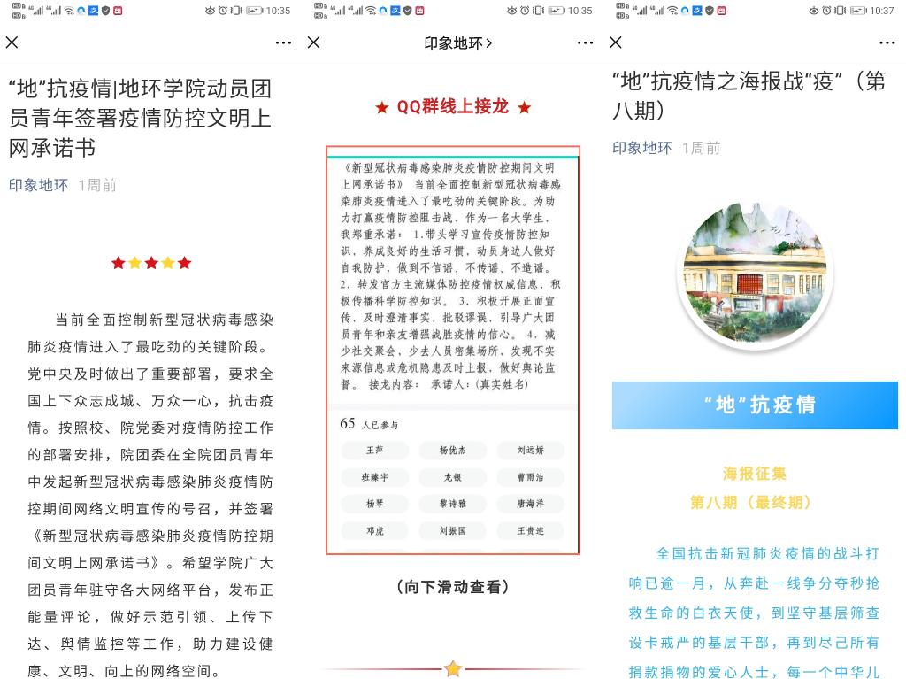 另一方面,院团委高度重视青年阵地建设,充分发挥共青团组织作用,切实加强党团共建。疫情期间,院团委多途径积极普及抗疫指南,动员团员青年签署疫情防控文明上网承诺书,协助解决青年员工疫情期间心理困惑,开展志愿者活动,组织“地”抗疫情海报设计,既作疫情期间青年员工的“贴心人”,又多措并举当好他们的“引路者”。