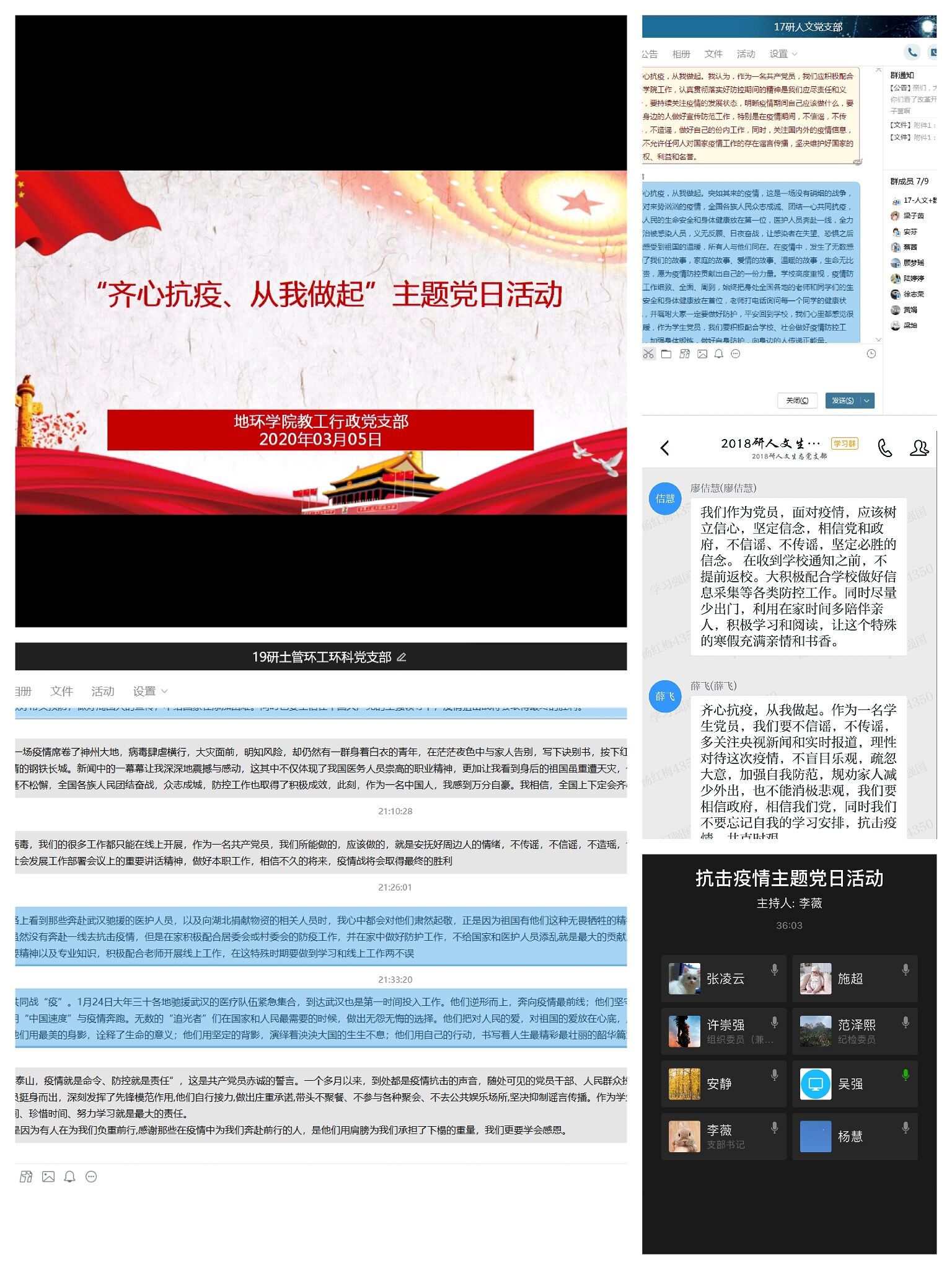 五是关爱员工有温度,科学防控讲方法。公司党委注重在疫情防控狙击战中开展员工思政工作,教育引导全院员工科学防控。公司班子成员面向公司员工开展“形势与政策”疫情防控思政“云端”宣讲教育,帮助同学们感受中国战“疫”力量,坚定“四个自信”;在QQ群、微信群与有心理困惑的员工及时沟通,疏通他们的心理焦虑;增强员工对疫情的公共安全意识,确保疫情防控期间既打赢“健康保卫战”,更做好“心灵守望者”。其中,通过支部书记工作室搭建关爱员工平台。由教工党支部书记对接员工党支部书记、团支部书记,配合公司开展防控宣传、信息报送、困难帮扶等工作。六是严格落实停课不停教、不停学制度。面对疫情严峻的形势,公司整合资源、协同推进,一方面利用QQ学习群、“学习通”、“知网在线教学服务平台”等平台进行线上教学,确保疫情期间教学任务不减、教学质量不降。另一方面,加强毕业员工论文指导工作,合理推延开题报告考核等工作,确保毕业员工能顺利毕业。七是坚持组织生活“不断线”。公司党委进一步压实责任,围绕党组织和党员如何更好在疫情防控工作中发挥作用这一核心内涵,统筹谋划,指导各支部开展 “齐心抗疫、从我做起”的线上主题党日活动。活动中,各教工党支部党员分别就疫情期间如何立足本职工作,创新工作方法,为延期开学期间“停课不停教、停课不停学”及全院其他重要工作提供有力管理服务保障等内容进行了深入讨论。各员工党支部则纷纷以信传情,既向防疫英雄们致敬,也通过疫情故事的分享交流,从中获取、感知前行力量,努力写好当代青年党员的责任与担当。