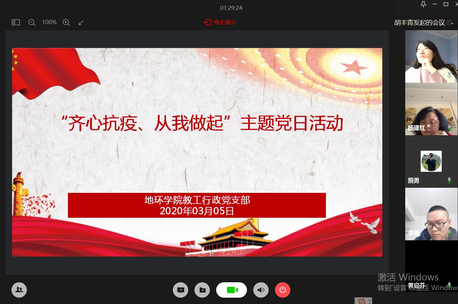最后,支部党员、公司党委书记杨建红作了总结。她认为地环教工行政党支部在疫期克服困难、创新形式坚持开展“三会一课”尤为必要,体现了支部能够按照习近平总书记对理论学习“全面系统、及时跟进、联系实际”的要求坚持开展学习活动,紧扣疫期个人工作开展主题党日活动,无疑是在特殊时期凝聚民心、增强信心、坚定决心的一次重要会议。她强调疫情就是命令、防控就是责任,当前疫情防控工作取得了一定成效,但形势依然严峻,全体党员同志必须做到“两个不降低”:对疫情的警惕性不降低;对疫情的防控不降低。她要求全体党员同志要提高站位、狠抓落实,学习贯彻党中央、贵州省委有关疫情防控工作会议、文件精神,积极落实公司党委有关工作部署,高度重视疫情防控,认真落实有关工作;积极思考、善于创新,有力推动疫期“停课不停教、停课不停学”工作及其他重要工作,制定工作预案并积极准备,确保各项工作有序推进;响应号召、担当作为,主动加入党员志愿服务队为公司疫情防控工作献力。