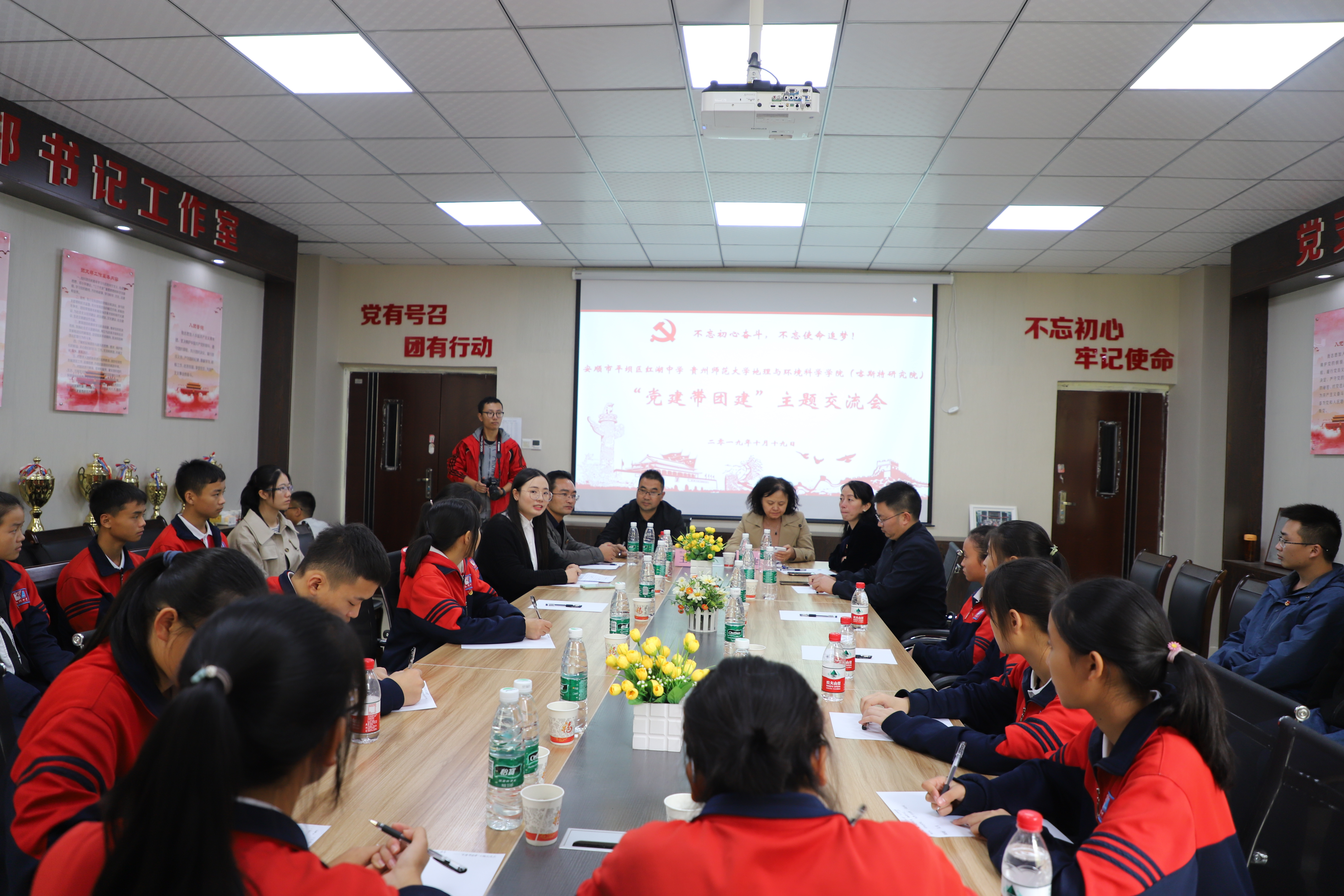 10月19日中午,williamhill与红湖中学党建带团建“不忘初心奋斗、不忘使命追梦”主题交流活动圆满结束。出席本次活动的有公司党委书记杨建红、党委副书记郭锐,安顺市平坝区红湖中学党支部书记王大建、团委书记张静波,公司园林系副主任范泽熙,公司参加“大手牵小手”活动结对的同学与红湖中学师生代表共计40余人参与本次活动。
