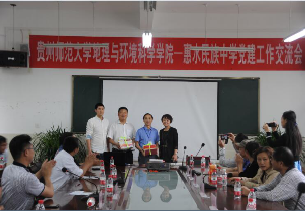 按照培训日程安排,5月13日下午,以“服务”地方教育建设为主题的第二阶段培训会在贵州省惠水县民族中学举行。公司党委委员、教工党支部书记彭贤伟教授受邀为当地员工作题为“高考地理全国新课标Ⅱ卷命题特点与复习建议”的讲座,针对当地公司高三员工即将面临的高考,带去了前沿、科学的地理学习思维和解题思路,受到该校广大师生的欢迎。公司党委书记杨建红、副书记田伟代表党委向惠水民族中学捐赠了公司党委精心挑选准备的党建书籍。各教工党支部书记、委员结合公司党委提前制定的工作提纲,对当地地理教师队伍建设现状、高考制度改革对中学地理的影响、高考制度改革对高校人才培养在地理方面的需求等工作开展了针对性调研;针对惠水民族中学老师们关注的高考改革背景下员工的选择与教师的挑战、高考改革背景下员工的生涯教育等问题进行了深入探讨。整个交流活动,受到了惠水民族中学领导及教师们的大力支持。