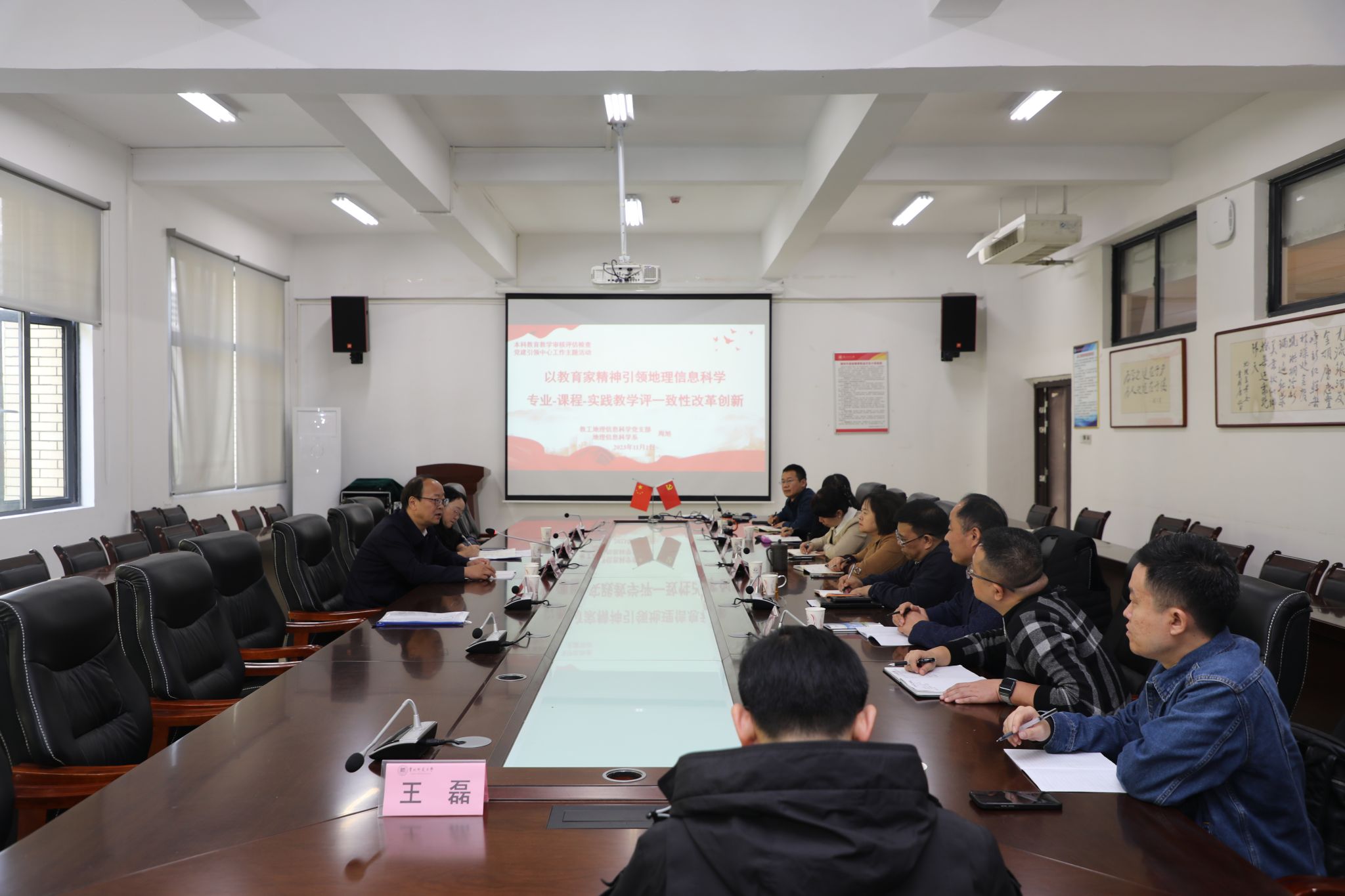 在公司3309会议室,肖远平听取了教工地理信息科学党支部书记周旭作的题为“以教育家精神引领地理信息科学专业-课程-实践教学评一致性改革创新支部”工作汇报并予以现场指导,肖远平在讲话中指出,教工地信党支部要坚持以高质量党建引领员工发展这一理念,强化产出导向,进一步彰显专业特色。他表示,《数字测图》课程在以赛促教方面融合了专业特色和员工产出,取得了较好的成果,今后可以进一步挖掘、总结,要依托遥感国家级课程思政示范课程,带动《数字测图》等课程建设成效取得更大进步,争取也将其建成实践类课程思政示范课程。