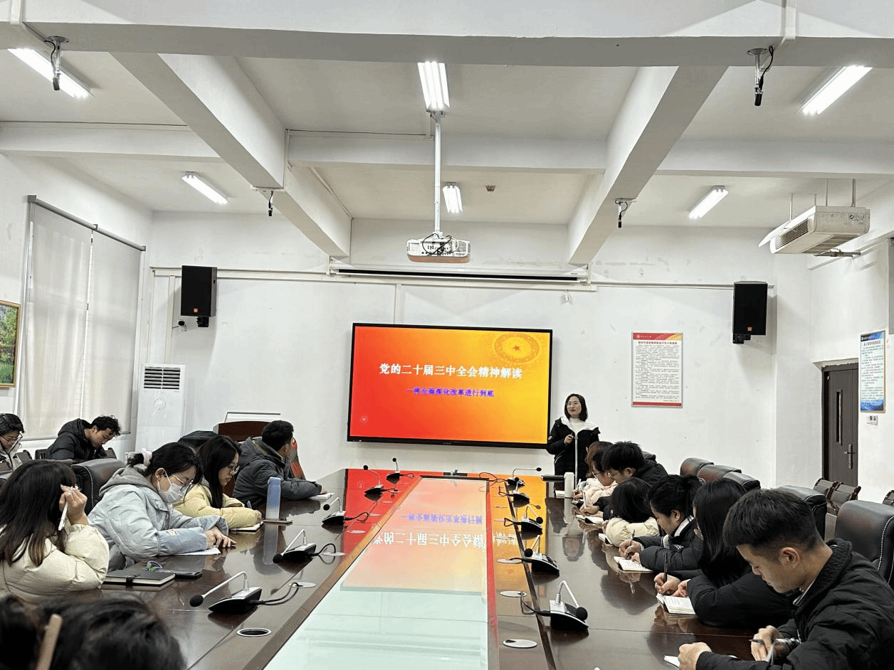 12月24日由翁应芳同志做《党的二十届三中全会精神解读—全面深化改革》专题报告。她从“改革是实现中华民族伟大复兴的关键一招”、“牢牢把握全面深化改革的正确方向”、“推进国家治理体系和治理能力现代化”、“全面深化改革要坚持正确方法论”、“以钉钉子精神狠抓改革落实”五个方面回答一开始向预备党员提出的“为什么说改革开放是决定当代中国命运的关键一招?如何把握好全面深化改革的方向?如何理解全面深化改革要坚持正确的方法论?”三个问题,要求预备党员不但要认真学习贯彻党的二十届三中全会精神,更要坚定不移贯彻落实。