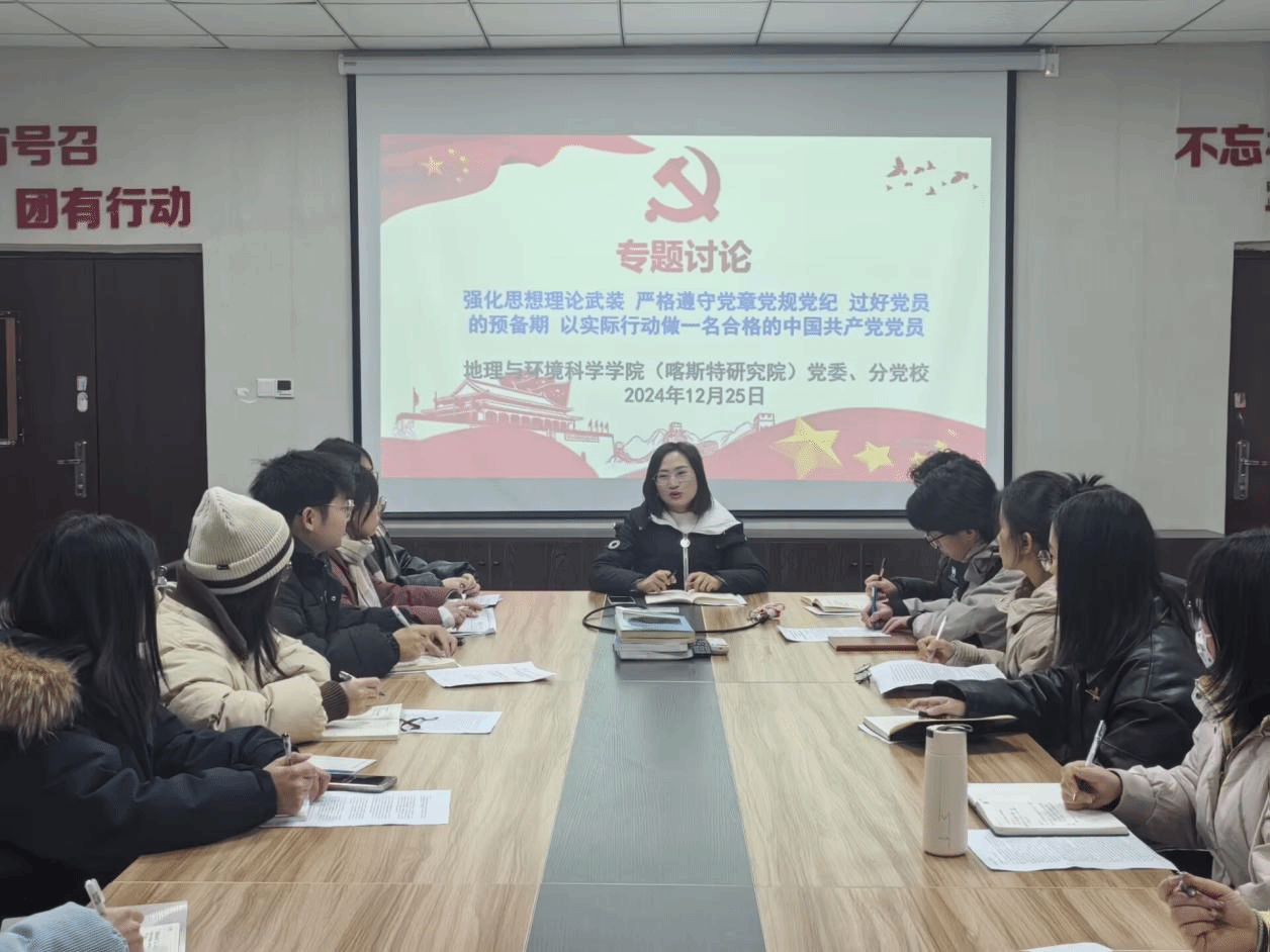 12月25日,观看《党课开讲啦》节目第1期:党的光辉历程后,分3个小组,分别在地环公司和喀斯特研究院,预备党员进行读书班学习,并围绕“强化思想理论武装 严格遵守党章党规党纪 过好党员的预备期 以实际行动做一名合格的中国共产党党员”主题展开讨论。