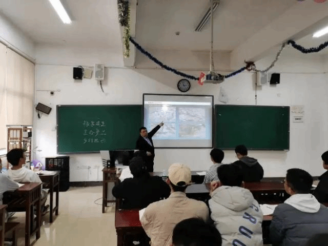 1月14日下午,公司党委副书记、经理周忠发以“保障粮食安全的中国策”为主题,在花溪地环楼3202教室为公司2022级地理科学、自然地理与资源环境专业本科生讲授《形势与政策》课。