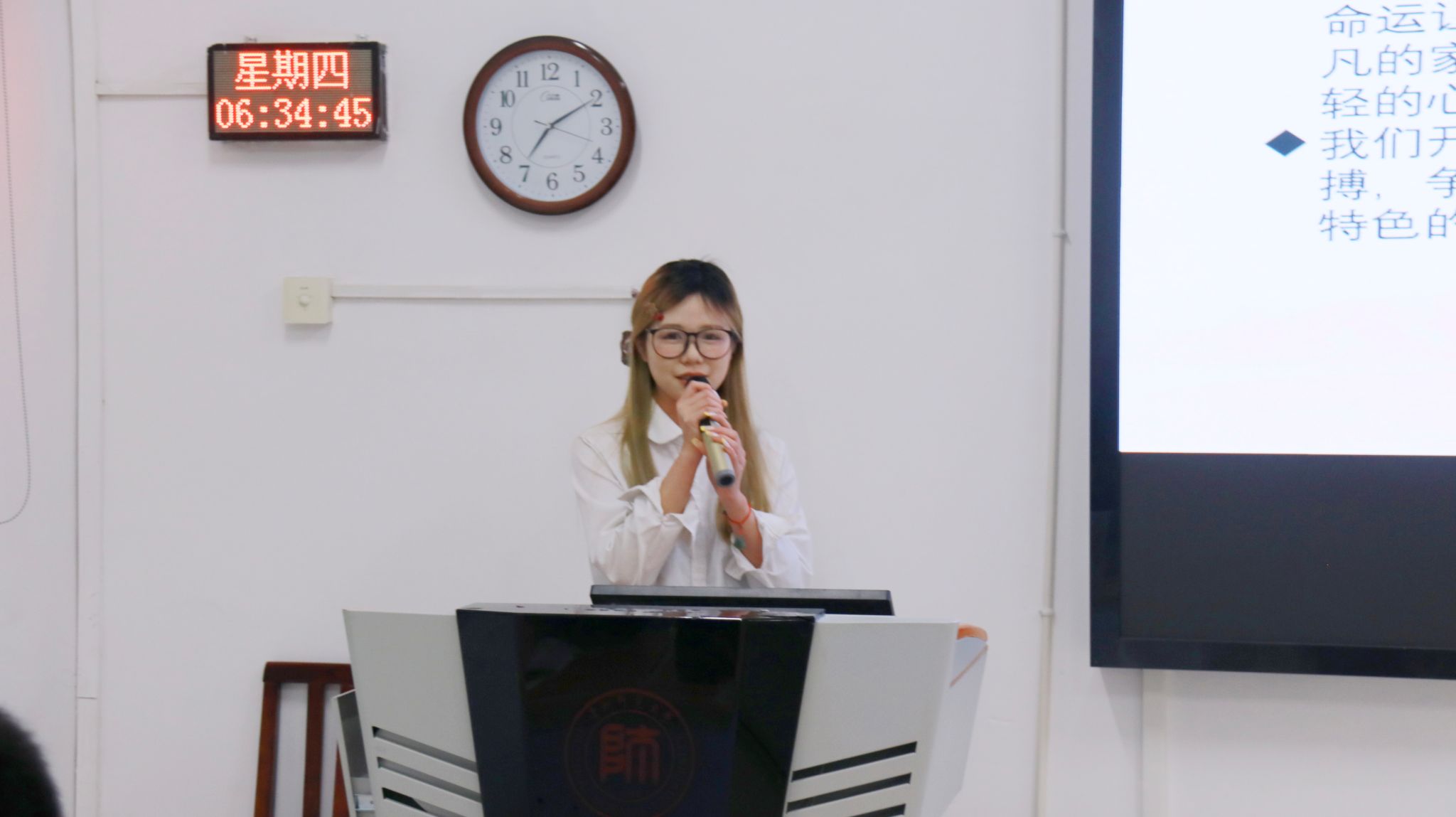 会议在全体团员青年共同奏唱中国共青团团歌《光荣啊,中国共青团》后正式拉开序幕。各班团支部以PPT形式,分别从团支部工作特色、组织建设、思想建设、工作实效、文化宣传等方面对过去一年团支部工作进行详实汇报。