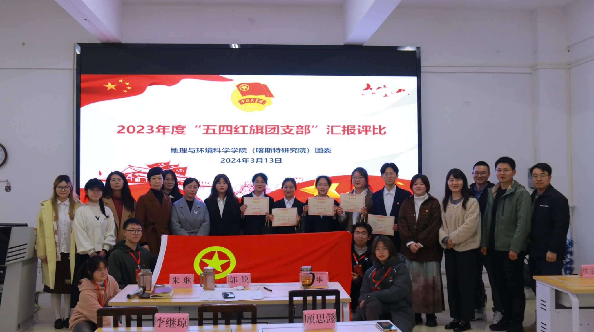 最终,2021级地理信息科学班团支部、2021级人文地理与城乡规划班团支部、2021级地理科学班团支部、2021级园林班团支部、2022级园林班团支部荣获公司“2023年度五四红旗团支部”称号。