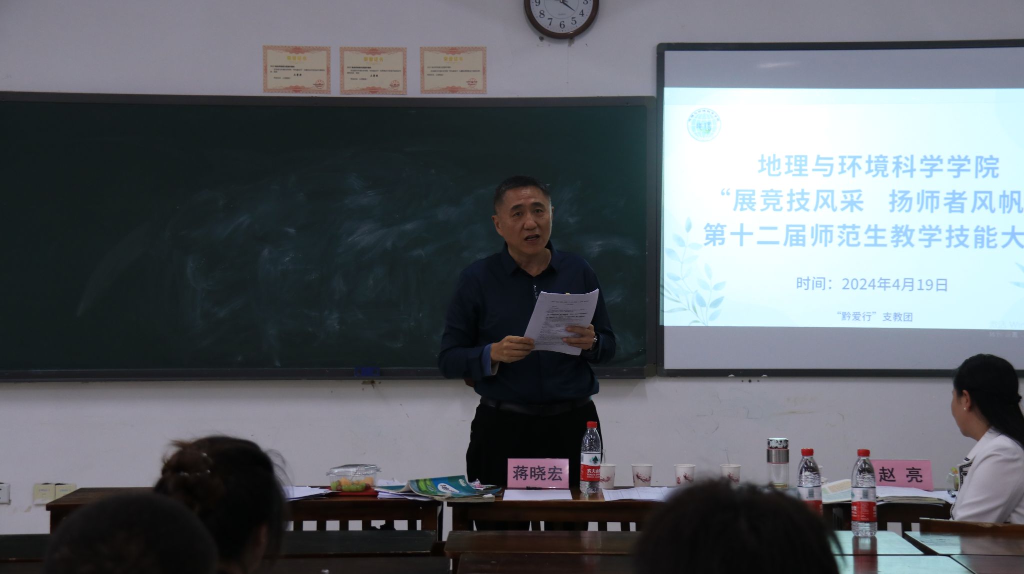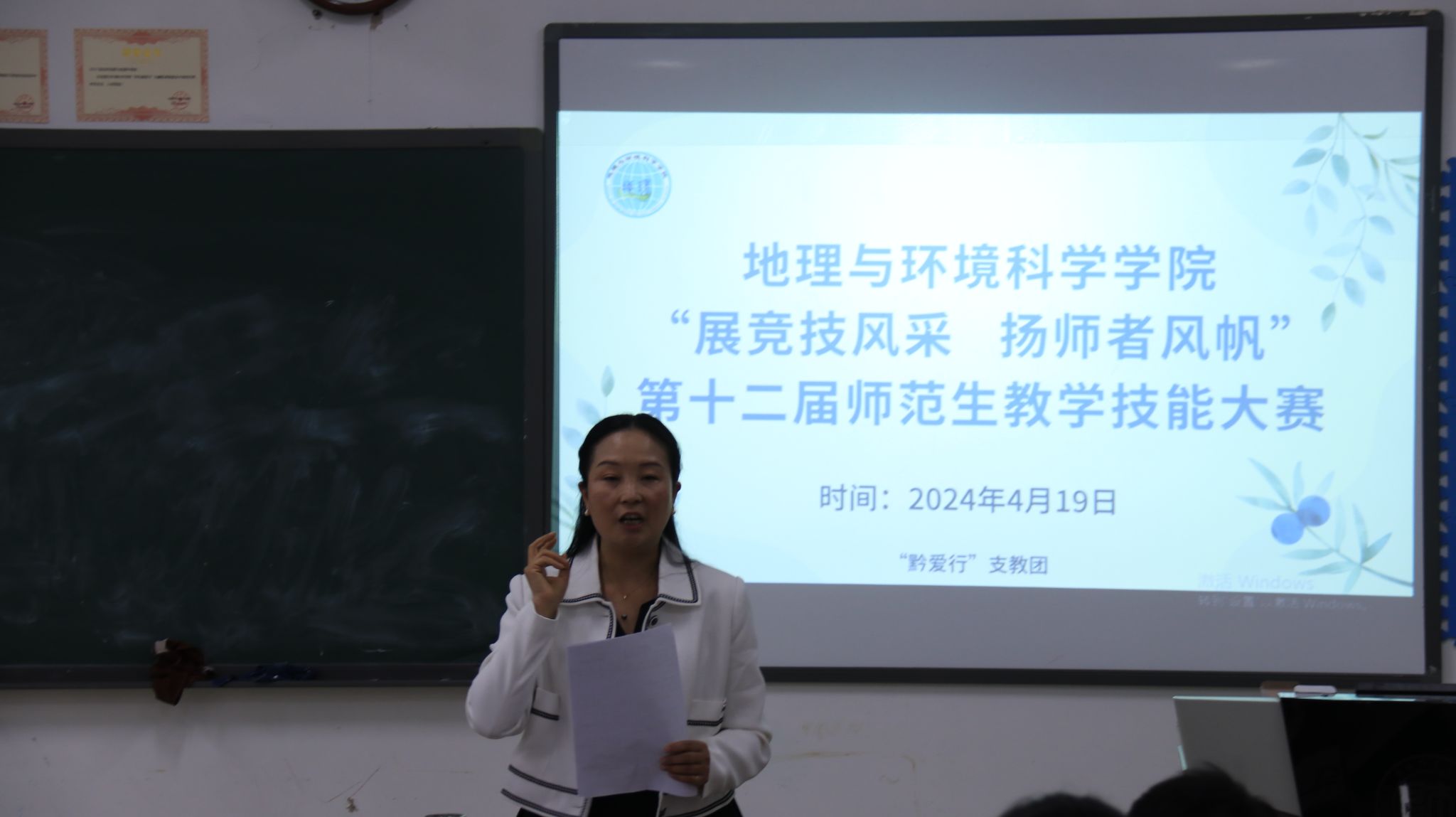 2024年4月19日下午,williamhill举办了“展竞技风采,扬师者风帆”第十二届师范生教学技能竞赛。此次竞赛诚挚邀请了原贵州省教育科公司地理教研员张慧、原贵阳市第三实验中学高级教师黄桂英、原贵阳市第二十八中学董事长杨华嵩、贵阳市第三十九中学党总支书记蒋晓宏、贵安新区新艺公司党支部书记刘伟、贵阳市民族中学正高级教师青渝、贵阳市第二中学地理正高级教师罗文攀、贵阳市教育科学研究所地理教研员张玉玲、北京师范大学贵安新区附属公司党总支书记安家堃、贵阳市第二十四中学董事长赵亮、贵阳市花溪区溪南高中副董事长杜鹃、williamhill官网附属中学地理高级教师张艳、williamhill官网附属中学德育处主任罗家杨、贵阳市第二十六中学地理教师邱兵贵、花溪区教育培训研究中心教研员龙黔、贵阳市教育科学研究所高中地理教研员薛佳佳共16位校外专家及williamhill地理科学系教师焦树林、容丽、李亦秋、何红、向刚、朱珂,人文地理与城乡规划系教师邓玲玲、李娟共8位校内教师担任评委。公司党委书记杨建红、副经理赵翠薇亲临现场观摩指导。