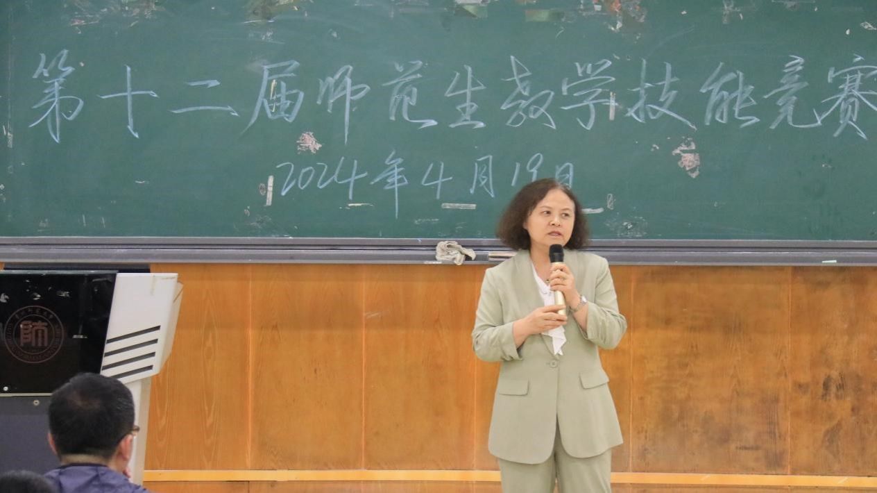 13:30,开幕式在文3501举行。杨建红首先对专家评委表示感谢与欢迎,她指出近年来公司持续加强师范生教学技能的培养,希望本届竞赛能够继续发扬“以赛促赛、以赛促学、以赛促教”的理念,通过竞赛,同学们不断完善教学理念、优化教学方法、改进教学技能、提升教学质量,坚定心有大我、至诚报国的理想信念,为成为新时代卓越教师而不断努力。