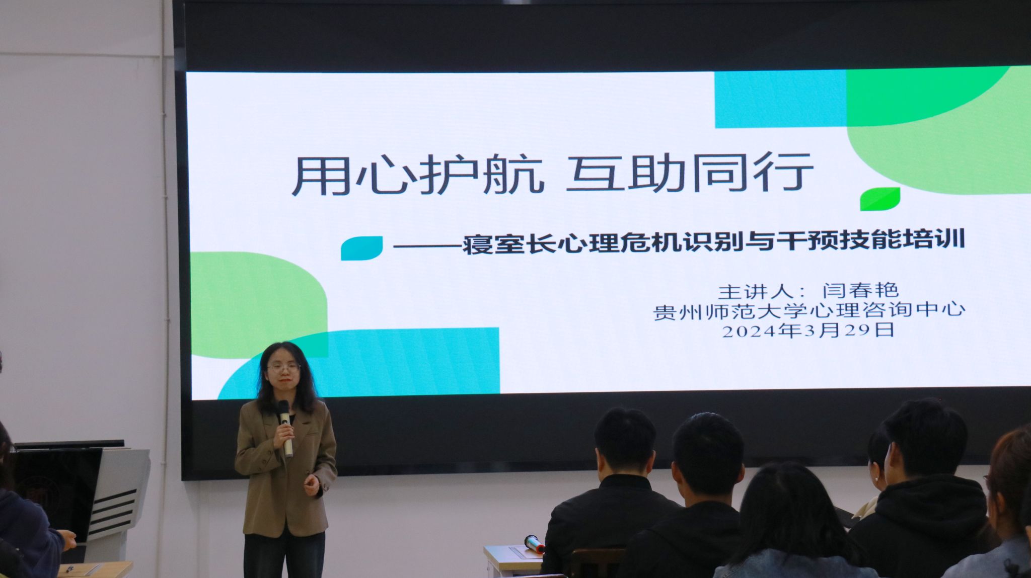 集团心理咨询中心闫春艳通过破冰游戏,为寝室长带来《用心护航 互助同行——寝室长心理危机识别与干预技能培训》,引导寝室长们认识自身在心理工作中的作用,学会对常见心理问题、心理危机的识别与应对,获取正确的心理咨询预约流程。