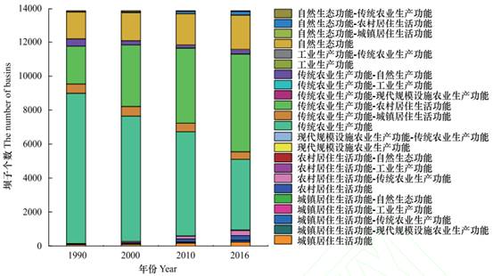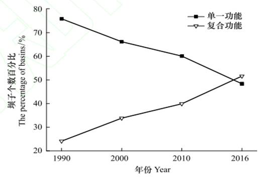 图3 1990年、2000、2010年、2016年各功能坝子数量变化