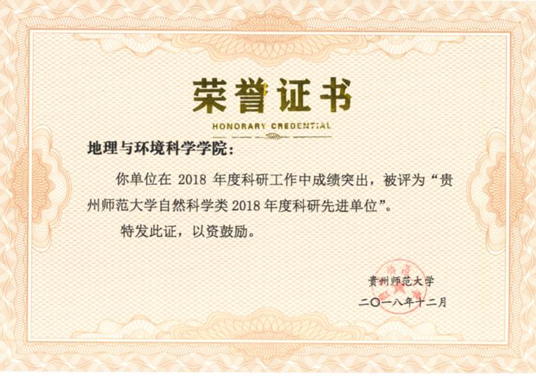 williamhill官网自然科学类2018年度科研先进单位