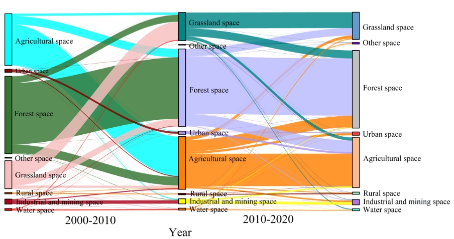 图2 2000-2020年长江经济带国土空间相互转换情况