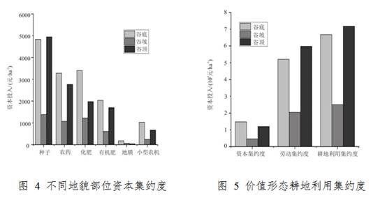 研究结果表明:(1)价值形态的耕地利用集约度空间差异显著,不同地貌部位耕地利用集约度由大到小依次为谷顶、谷底、谷坡。其中,劳动集约度空间分布特征与其一致,资本集约度谷底最大、谷坡最小,谷顶的耕地利用集约度平均值为71 739.85 元·ha-1 ,谷底为66 751.78 元·ha -1,谷坡为25 015. 80 元·ha-1 。(2)实物形态的肥料投入,谷坡最少;有机肥投入比例不断增加。(3)不同地貌部位的耕地利用集约度影响因素存在差异:谷底主要是家庭劳动力平均年龄、家庭总收入、二三产业收入、劳均耕地面积、经济作物播种面积比重、家庭机械拥有台数;谷坡为家庭总收入、劳均耕地面积、家庭机械拥有台数;而谷顶为家庭劳动力平均年龄和离集镇的距离。耕地总面积、农业政策补贴是共同影响因素。研究结论可为优化槽谷区土地利用格局、促进生态和社会经济协调发展提供依据。