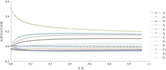 图 7 谷底耕地利用集约度驱动因素的岭迹图