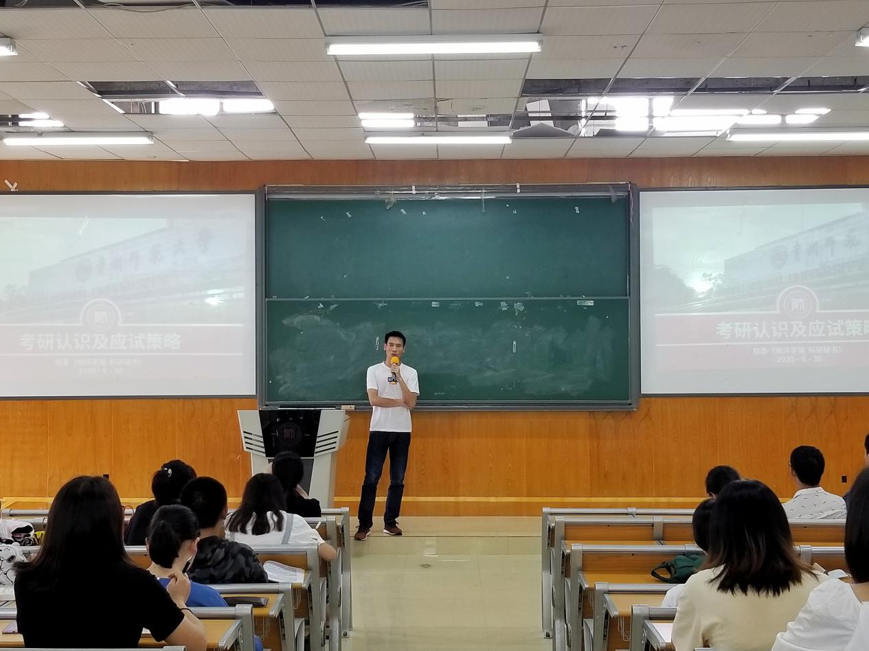 随后,熊勇以考研认识以及应试策略为主题,为同学们详细讲解了考研的自我衡量与预判、硕士培养方式、研究生就业等内容。