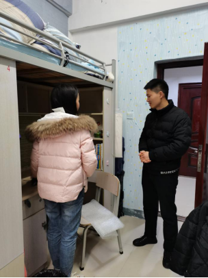 开学伊始,按照公司开学思政第一课系列活动之安全隐患查一次、新学期班会开一次、新学期要求提一个、寝室走访走一趟的“四个一”活动安排,辅导员张蒙蒙、徐志荣和王冕等几位老师深入员工寝室看望返校员工,提醒员工做好新学期上课准备工作,提前预习,遵守公司疫情防控要求,按时打卡、报备体温晨午晚检,无事不出校、出校要报批等。