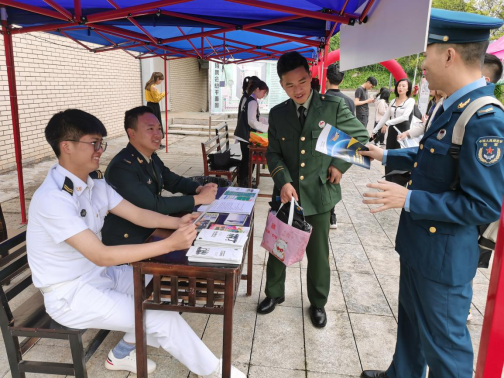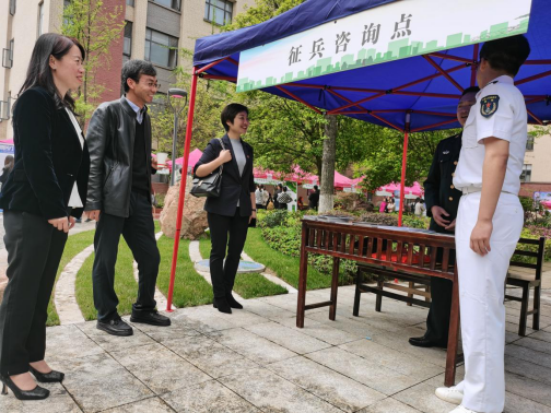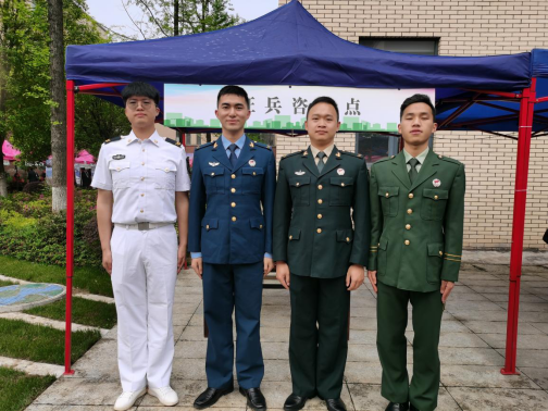 领导、老师也来到征兵咨询点,和同学们亲切交谈,了解他们的学习、生活情况,感谢他们为征兵宣传工作所付出的努力,号召广大青年以他们为榜样,为国防建设贡献青春智慧。